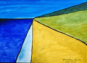 2024Eenvoudig schilderijtje van abstracte kustlijnen