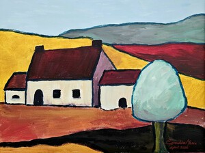 Eenvoudig schilderijtje van abstracte kustlijnen